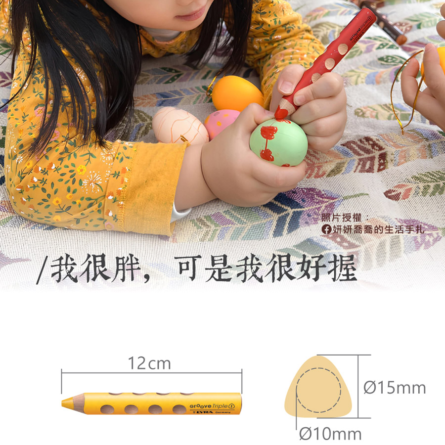 嚴選永續森林認證木材,筆身為三角造型,表面無添加物,好抓握、好支撐、好舒服