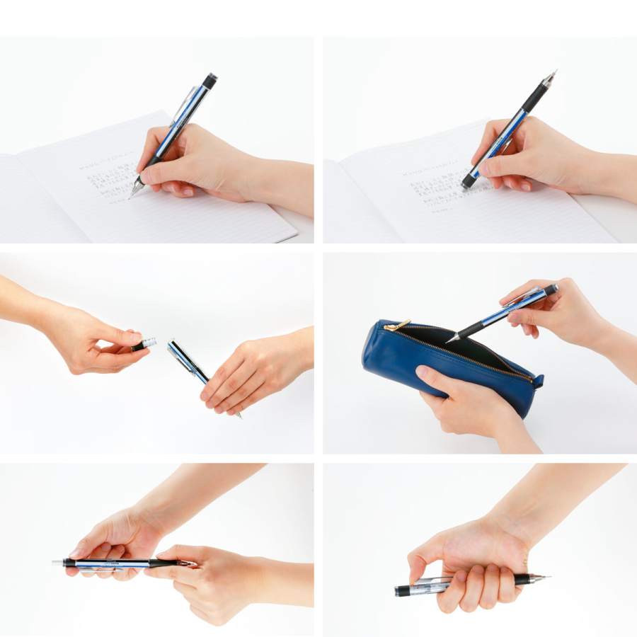 只要將筆尖朝下,輕輕上下搖動筆桿,就能自動出芯
