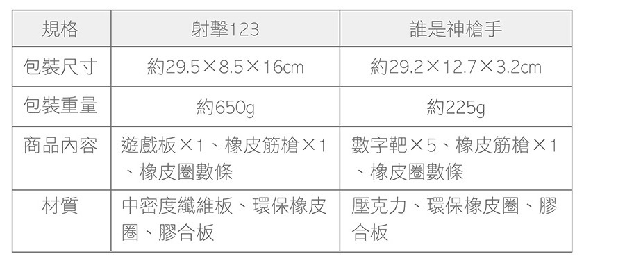 射擊123:遊戲板×1、橡皮筋槍×1、環保橡皮圈數條