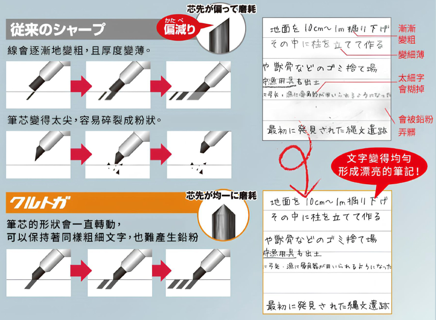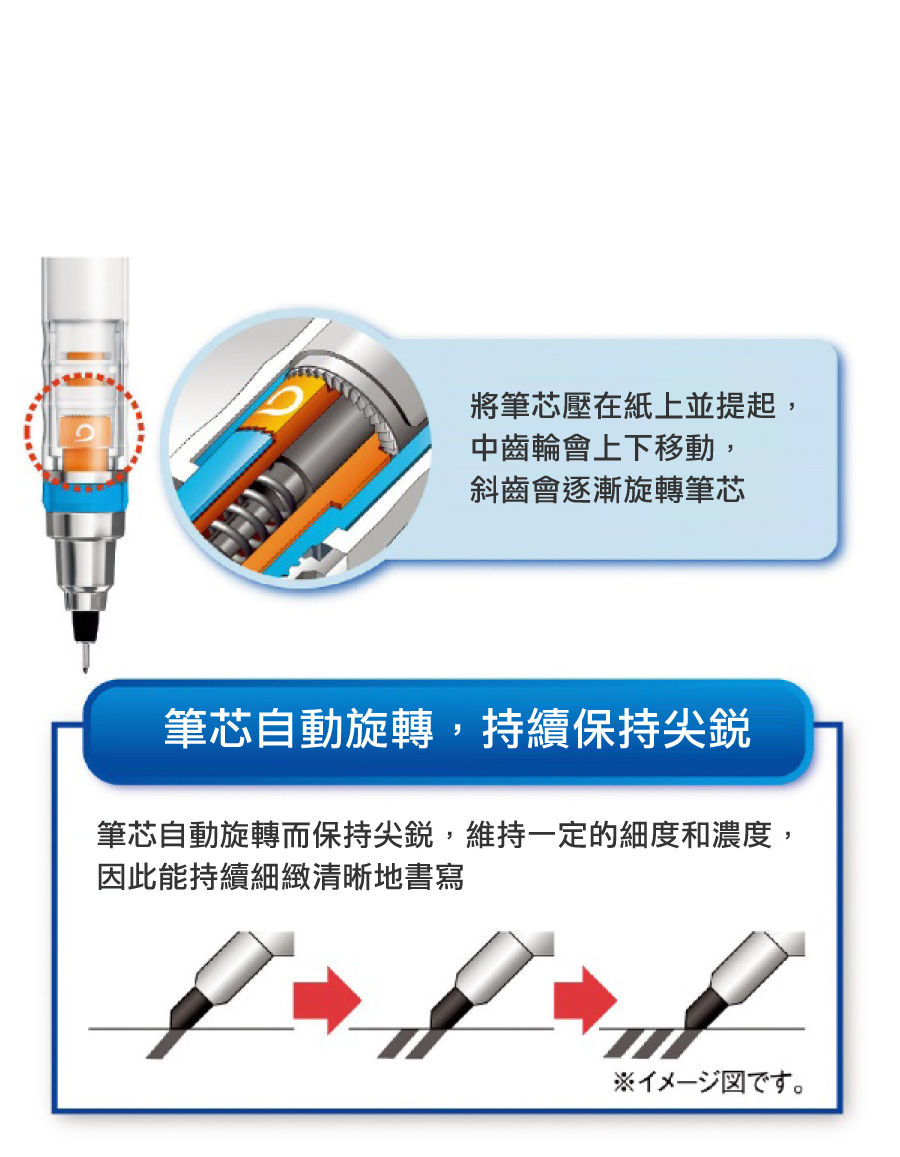 搭載經典KURU TOGA自動轉芯機制,筆芯不會愈寫愈粗