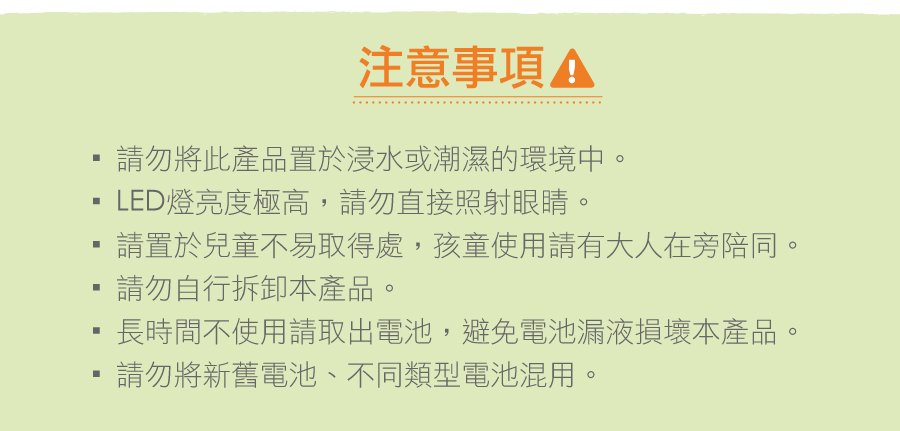 注意:鈕扣型電池應避免幼童取得,防止發生吞嚥危險。
