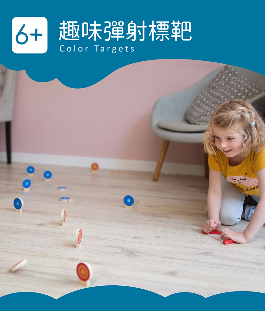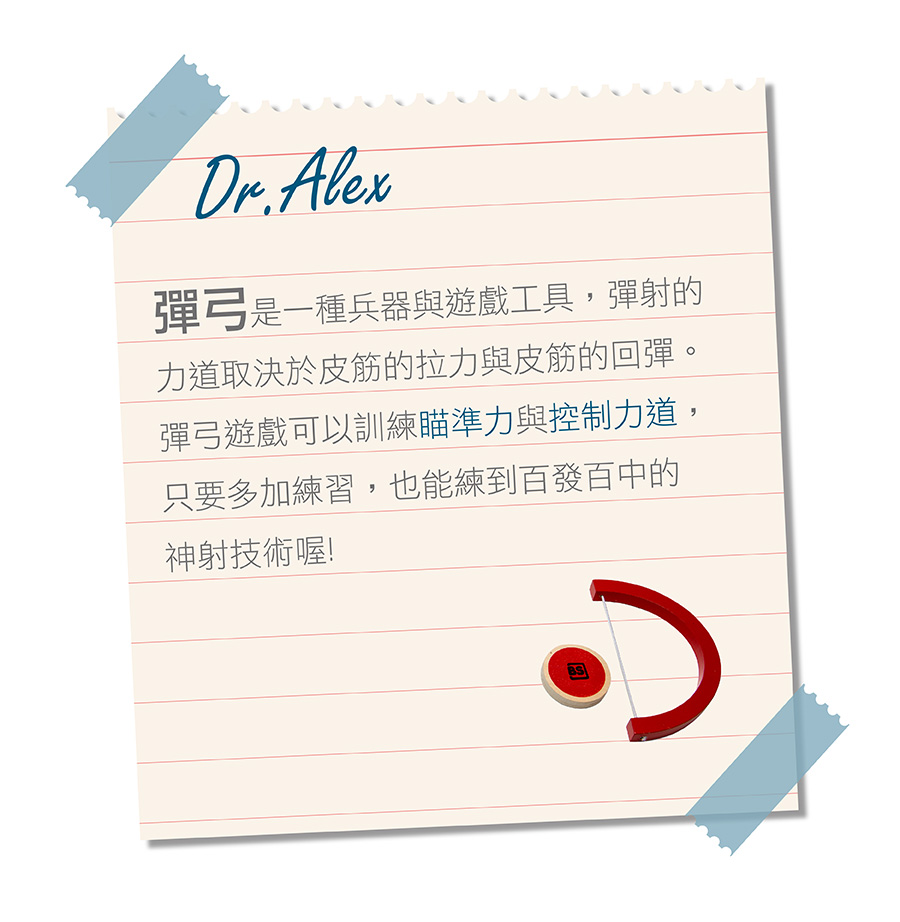 將彈射弓平放於桌面/地面,將彈射餅向後拉