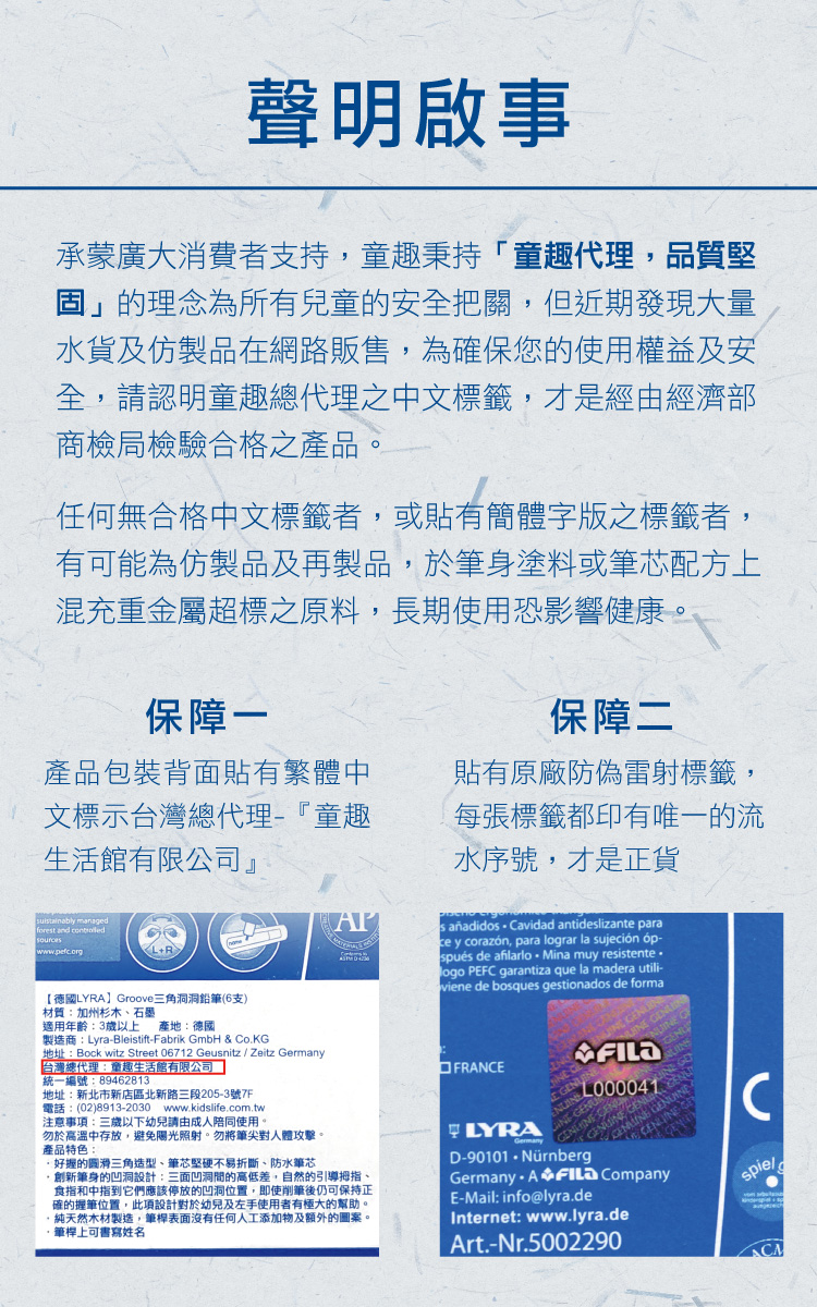LYRA所有產品均通過歐洲所有安全性檢測以及醫學測試,LYRA的鉛筆及色鉛筆,顯色度佳,堅固不易斷,提供高品質、安全、環保的產品。有了這樣的承諾,世界各地的父母們都以選用安全和物超所值的產品。