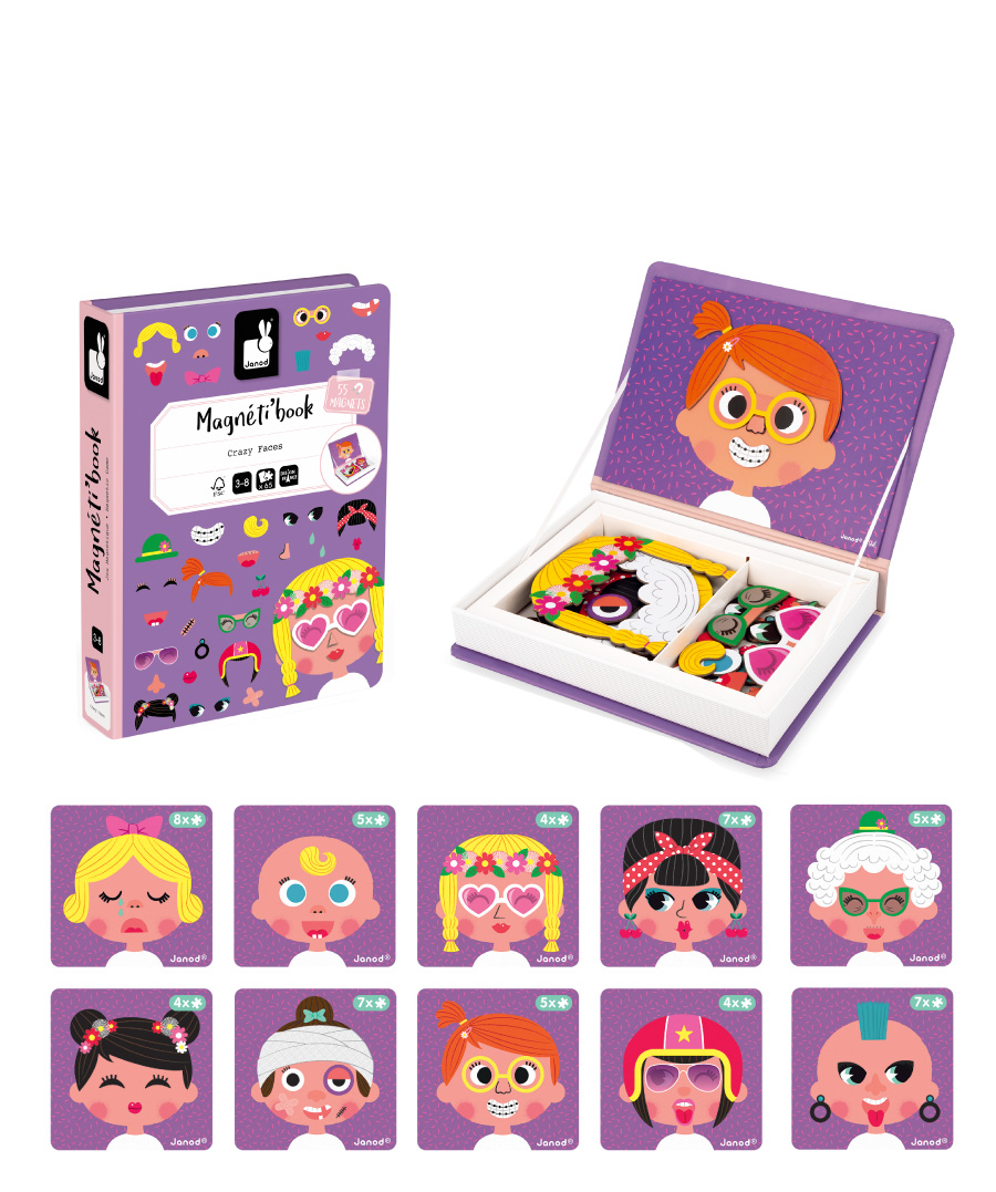 一個看似書本的堅固外盒,打開書本,將帶領孩子進入天馬行空的想像世界。法式插畫,結合多元的磁性元件,增加趣味性,內附指示圖卡,可引導小小孩基本認知對應的能力。穩定的磁性,可使遊戲進行更順暢,特別是外出時~