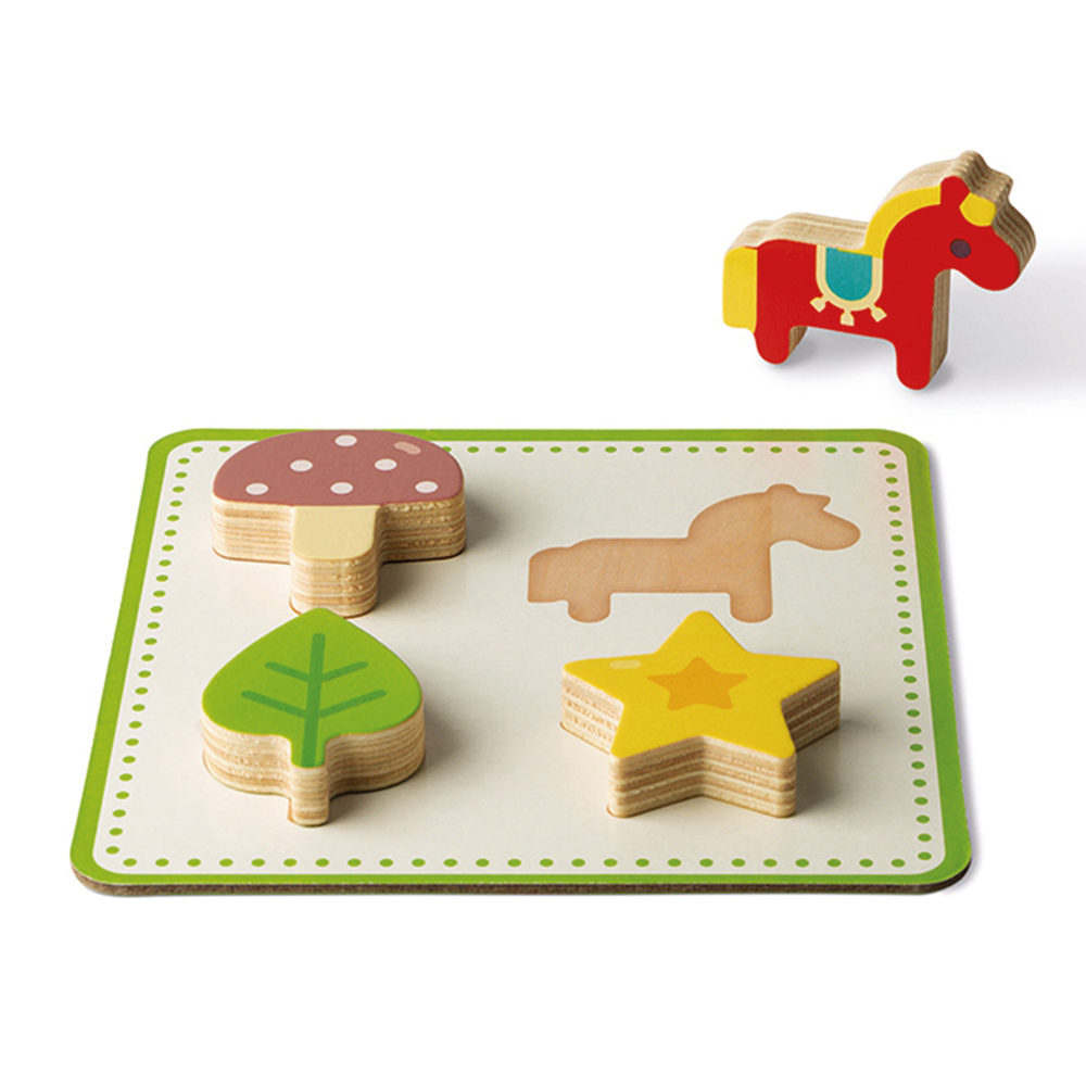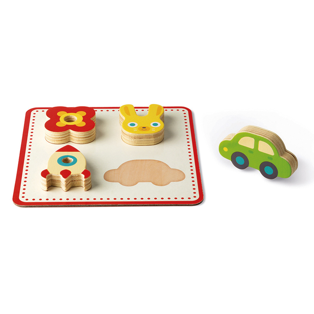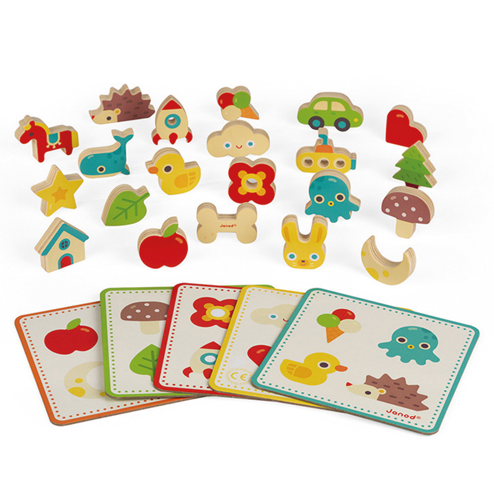 遊戲板的另一面為積木的輪廓,對照形狀,訓練觀察力。