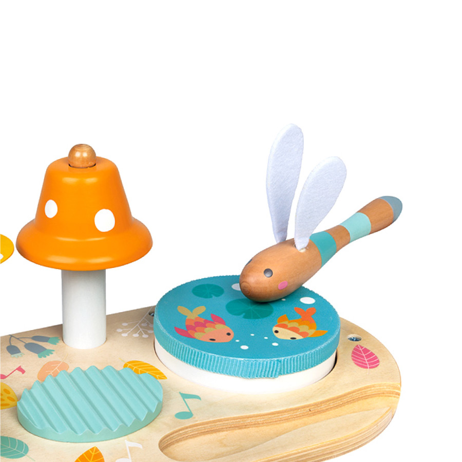 蜻蜓造型的小木棒,搭配柔軟白色毛氈翅膀,增加敲打樂趣