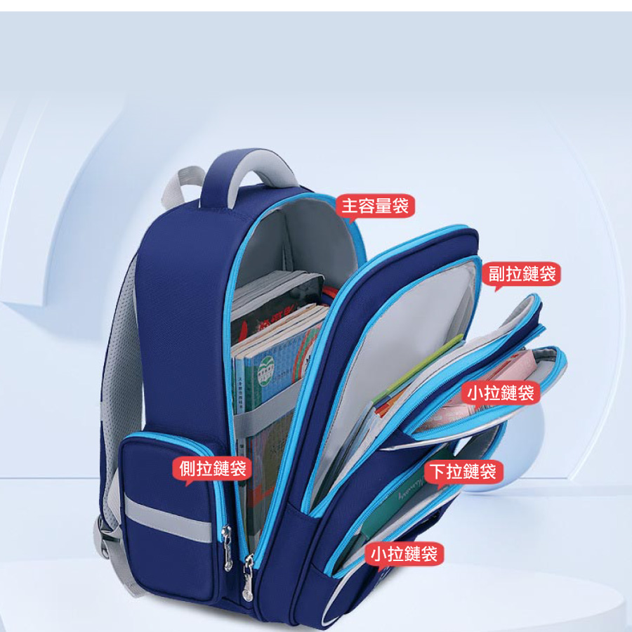 ● 3D護脊背幅,均勻分散書包重量,加厚海綿精準定位背部三大部分,背起來更輕鬆