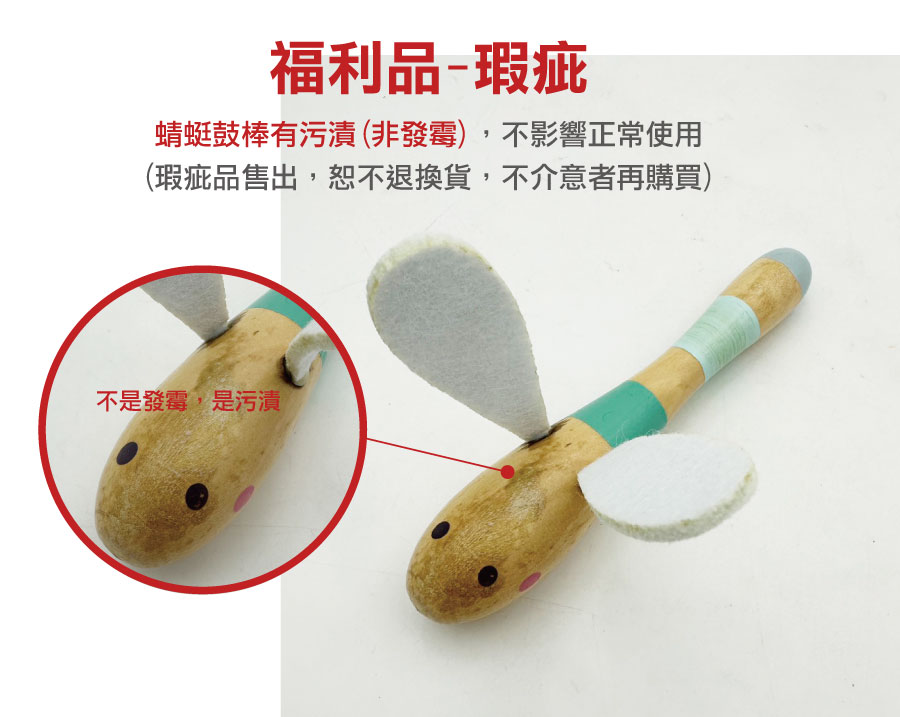 ● 福利品-瑕疵 :蜻蜓鼓棒有髒汙[非發霉],不影響正常使用(瑕疵品售出,恕不退換貨,不介意者再購買)