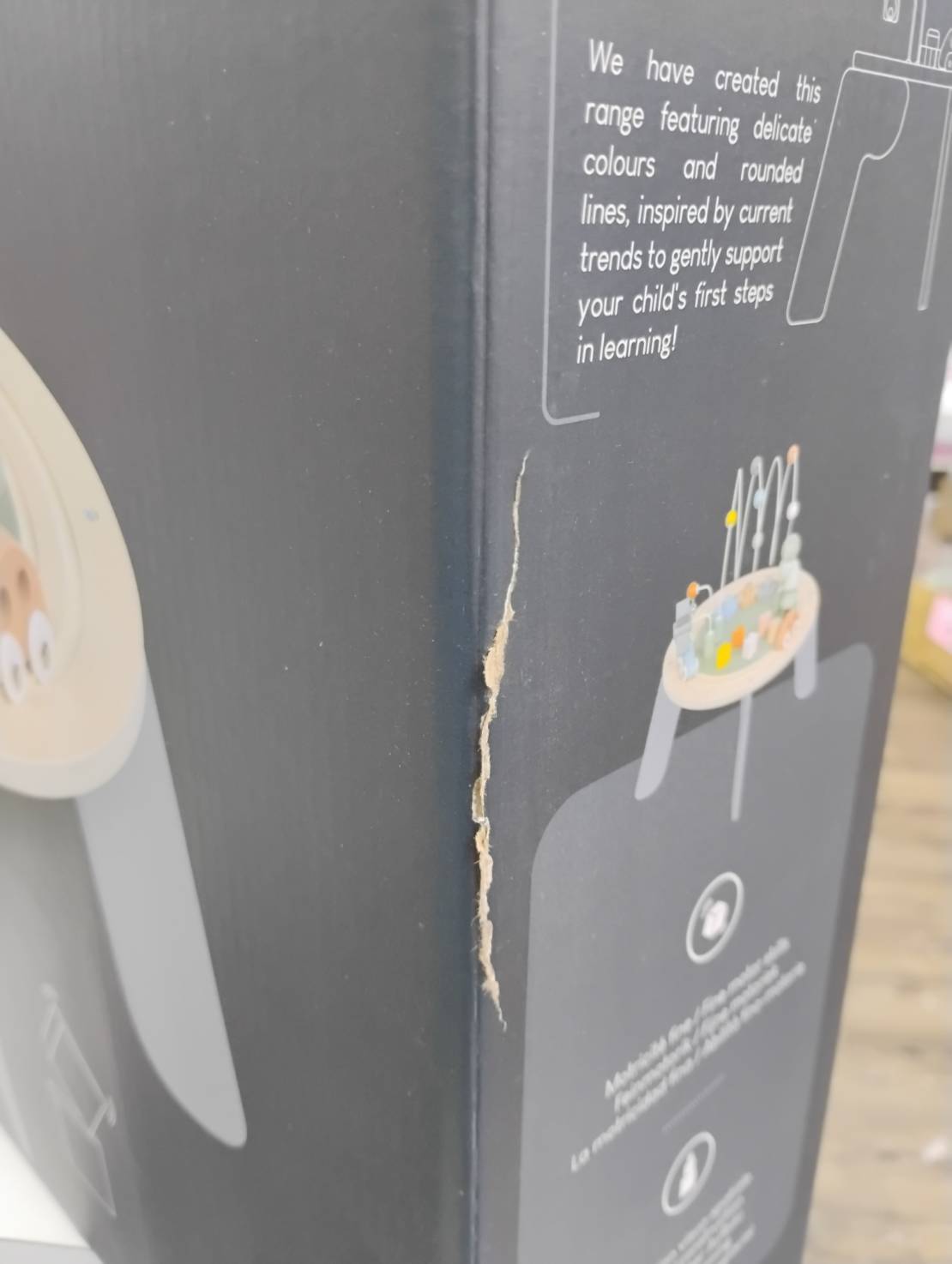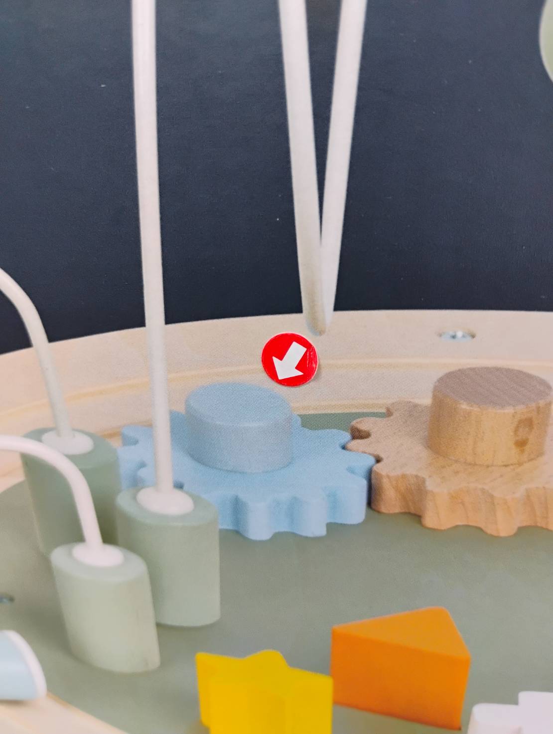 一個由轉轉齒輪、串珠迷宮、水車轉輪及形狀積木所組成的樂園,外圍還有軌道遊園車,可以讓寶寶忙上一陣子~