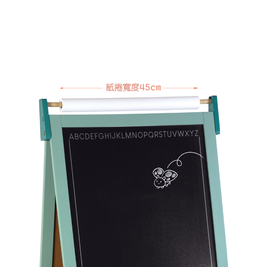 雙面立式畫架,可依身高調整高度,搭配捲軸式畫紙,並融入南法鄉村色調,讓畫架也能成為家中一個美麗的角落。