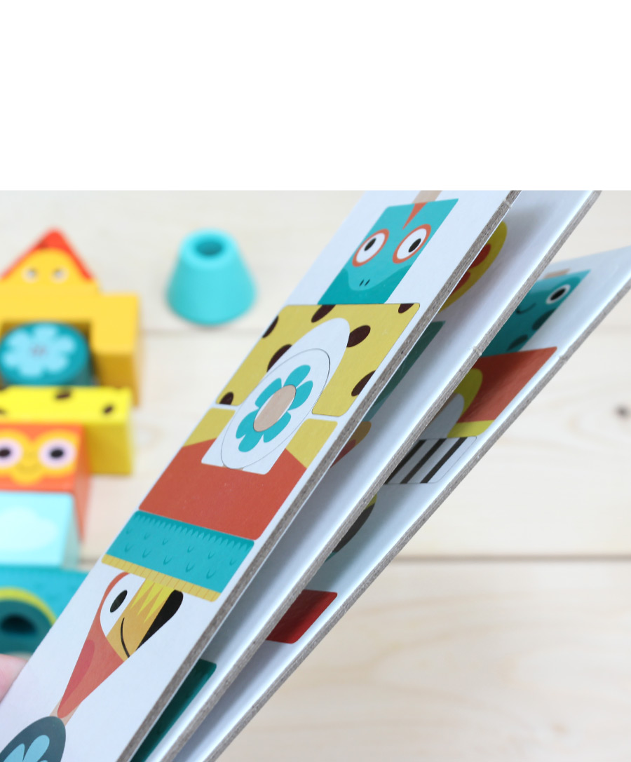 充滿各種色彩及動物圖樣的認知學習遊戲,讓孩子透過遊戲訓練手眼協調能力。法式原創設計,每個元件都有著不同的圖騰,搭配導引式圖卡,有助於發展幼兒的專注力。