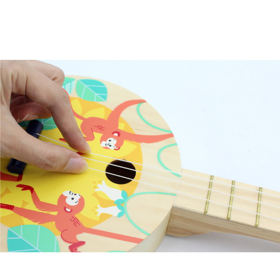 三隻淘氣的小猴子已經等不及要聽聽孩子們能彈出什麼旋律了!孩子不僅能自由創作旋律,也能模仿大人彈奏,從中培養音感與創造力。