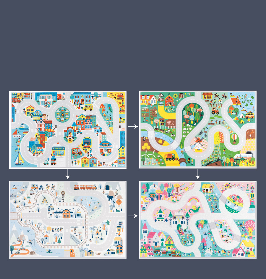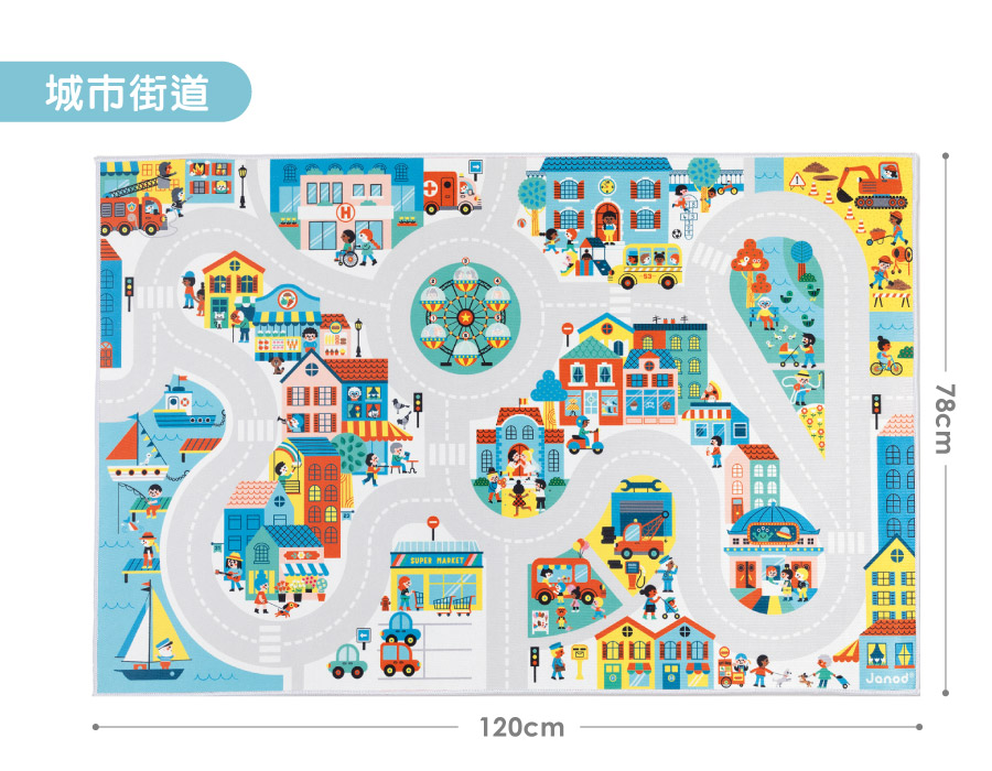 這款防滑遊戲墊,擁有豐富的遊戲情境與寬闊漫長的道路設計,讓喜愛四處探索的孩子暢行無阻,滿足孩子無窮的想像空間。