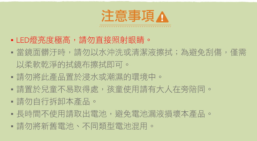 電池 : 3 x AAA (不含)