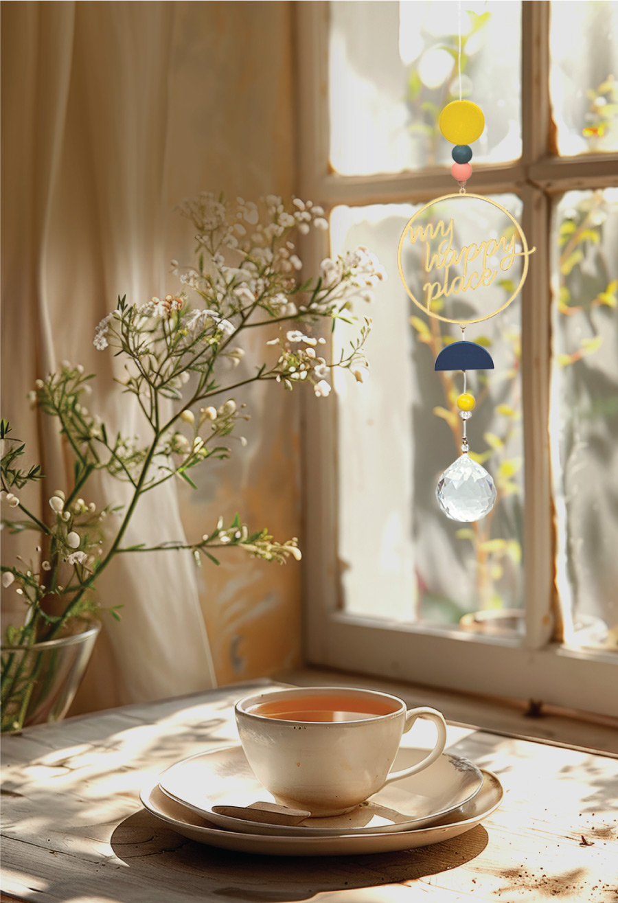 將水晶吊飾掛在靠近窗戶的地方,它會捕捉陽光的反射,使房間閃耀著光芒
