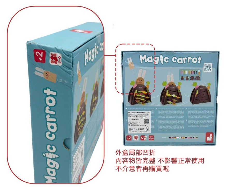 內附 : 坑洞x1、兔子x1、蘿蔔x12、骰子x1