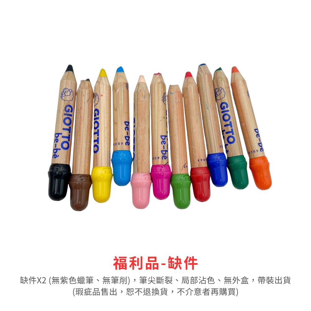 ● 福利品-缺件 : 缺件X2 (無紫色蠟筆、無筆削),筆尖斷裂、局部沾色、無外盒,袋裝出貨 (瑕疵品售出,恕不退換貨,不介意者再購買)