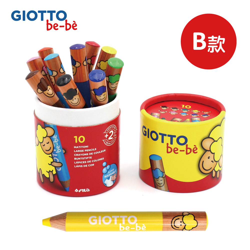 ★福利品【義大利 GIOTTO】可洗式寶寶木質蠟筆10色(筆筒裝)B款 (盒損)