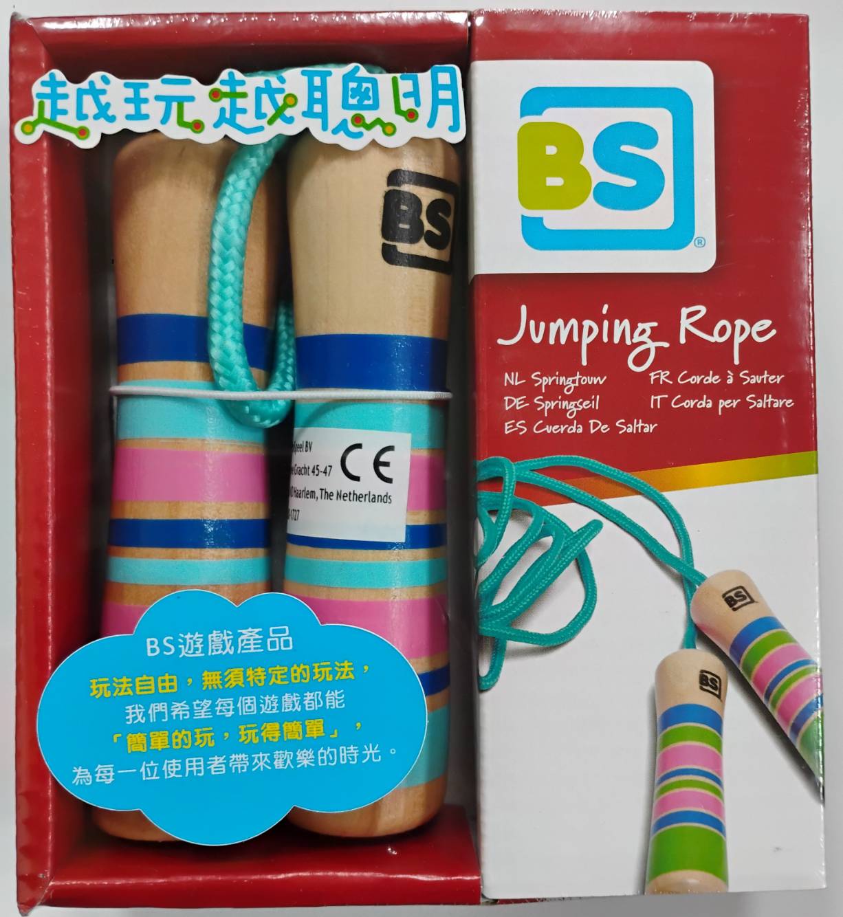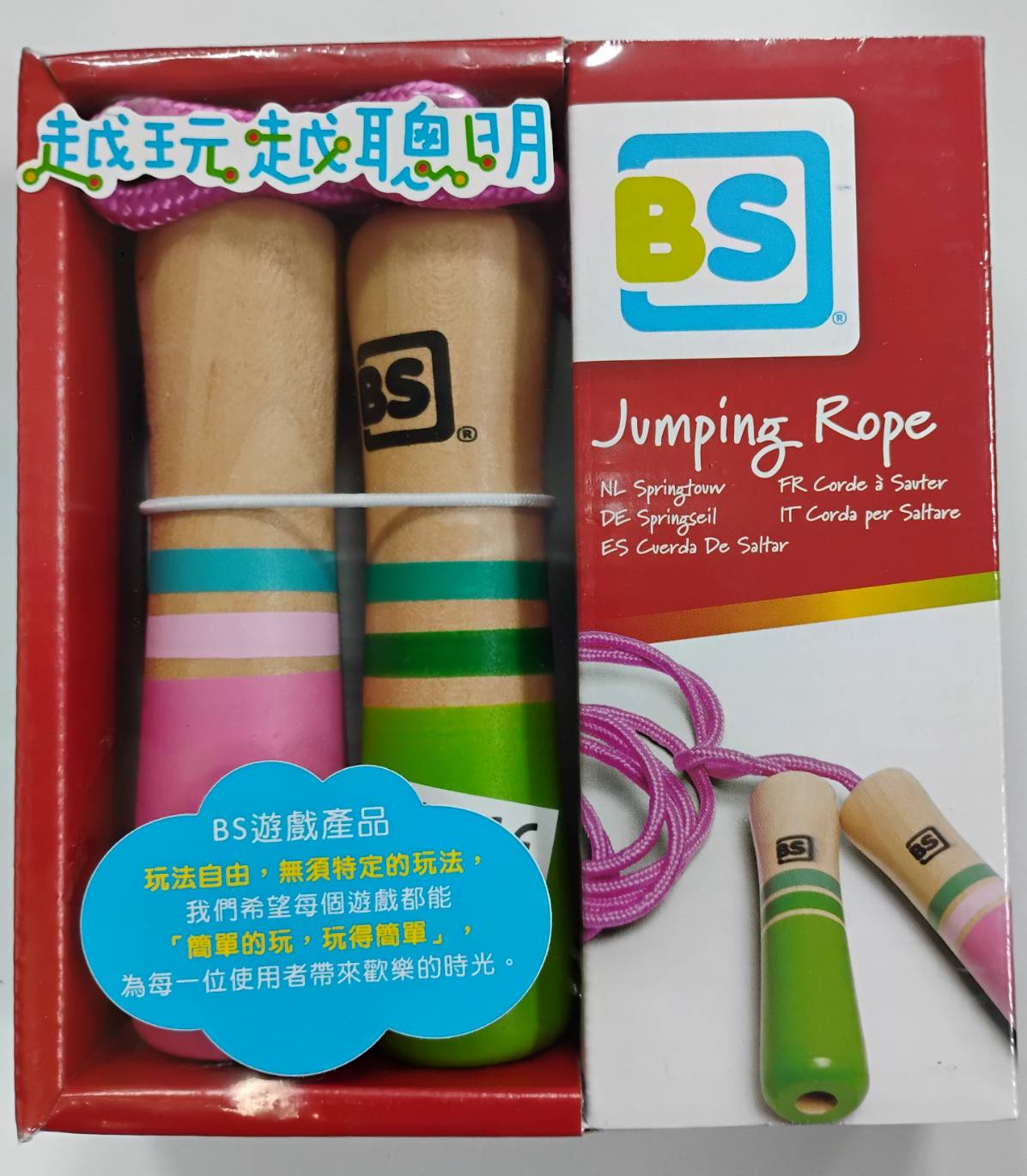 專為幼兒設計的兒童跳繩,長度約2公尺,好抓握的木質握把,非常適合幼兒學習。