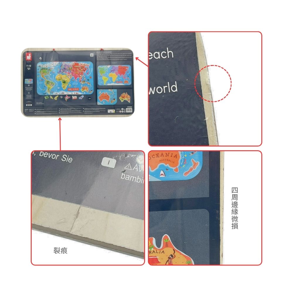 ★福利品【法國Janod】磁性木質拼圖-世界地圖(英文版)(瑕疵)