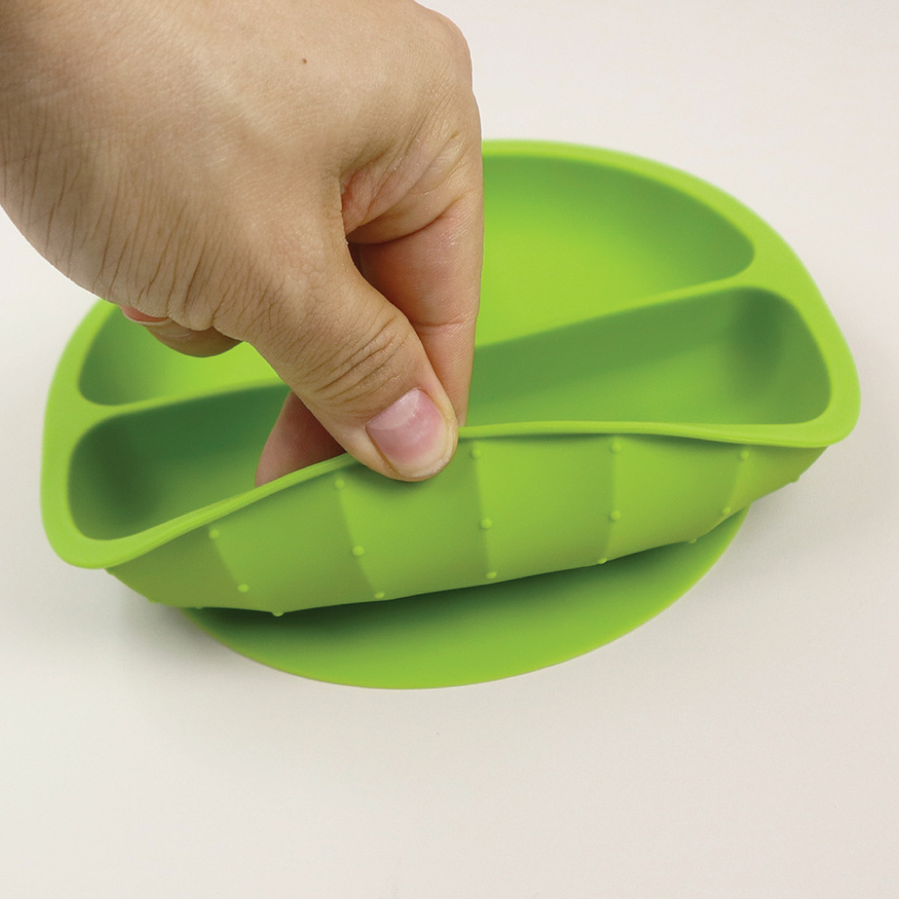 ● 矽膠餐碗、餐盤:底部吸盤設計,牢牢吸附桌面,幼兒不易打翻食物