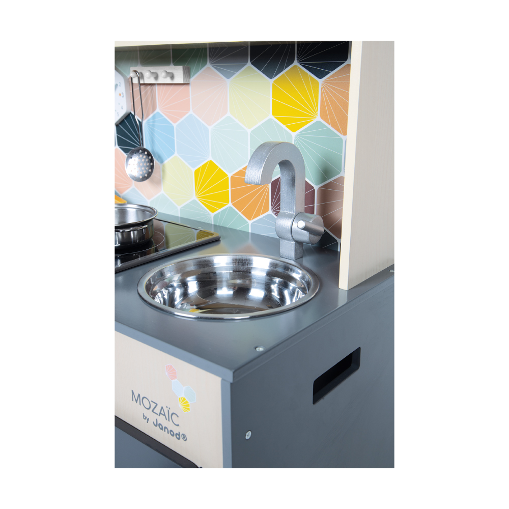 以黑色為主色系,搭配彩色馬賽克磁磚,打造創意個性的地中海風格,讓兒童廚具煥然一新!