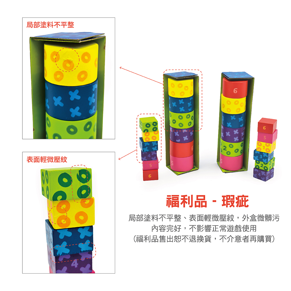 ★福利品(瑕疵):局部塗料不平整、積木表面輕微壓紋,外盒微髒污,內容完好,不影響正常遊戲使用 (福利品售出恕不退換貨,不介意者再購買)