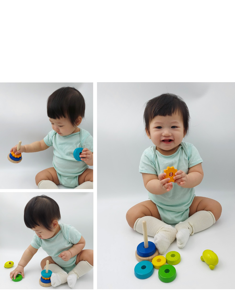 抓握及套疊,有助於幼兒手部精細動作發展及手眼協調能力