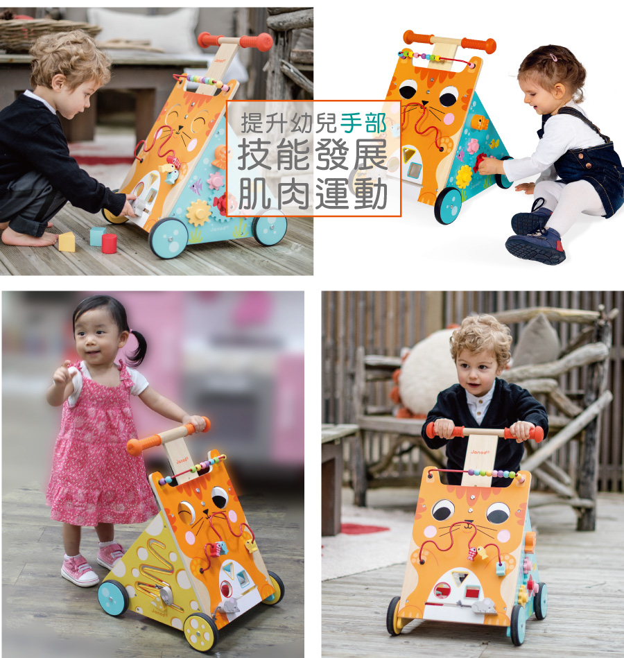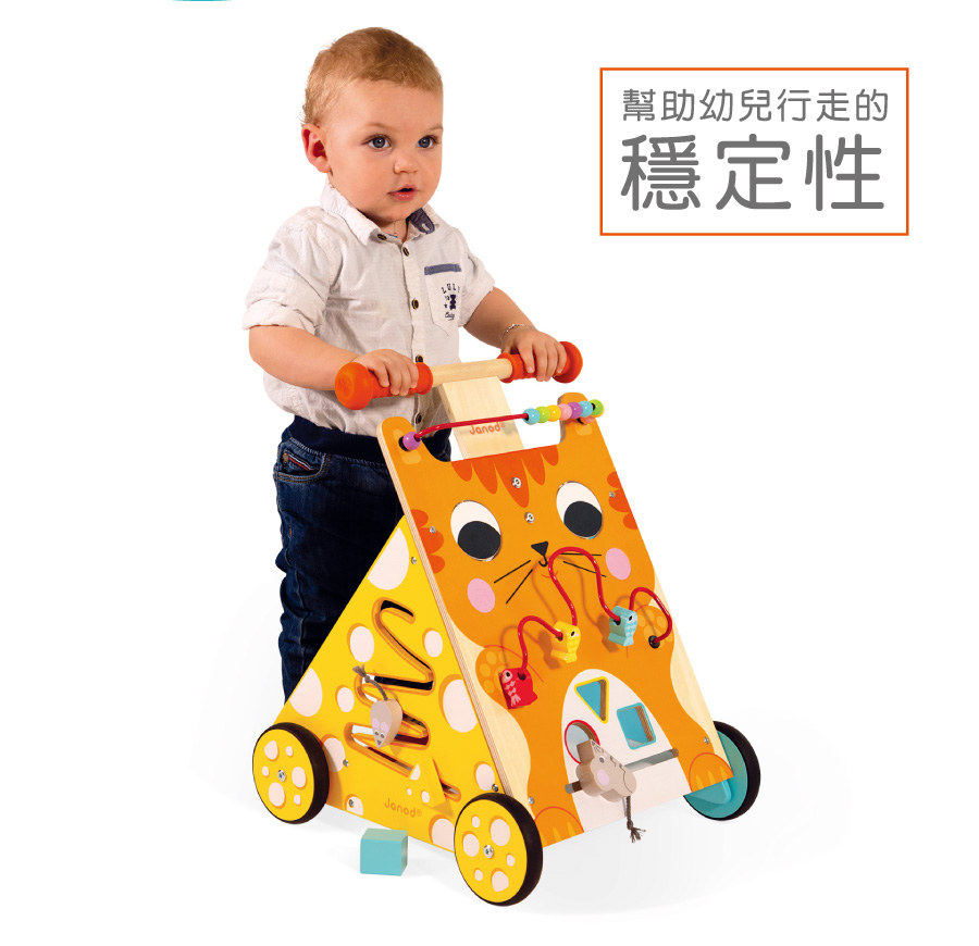 學步車再進化! 可愛咪咪造型,可以是學步推車,也可以是寶寶技能發展的工作站喔!