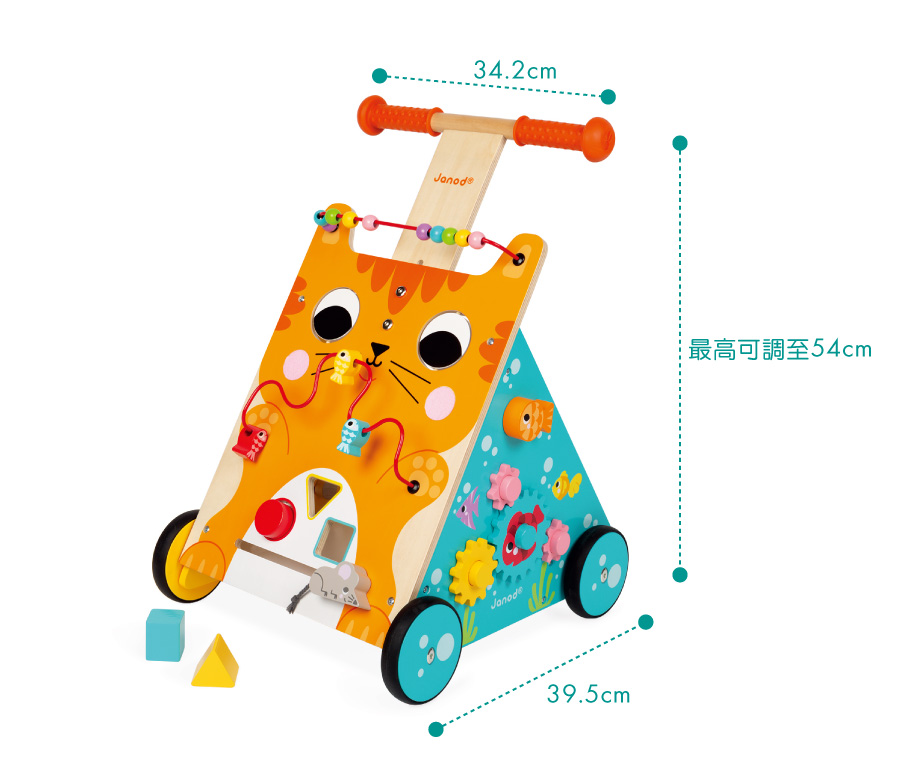 幫助幼兒走路的穩定性,還有小老鼠軌道,海底齒輪,形狀積木….等8種有趣功能,提升幼兒手部技能發展與肌肉運動。