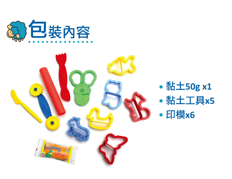 -  內裝 : 黏土工具x5、印模x6、黏土50gx1