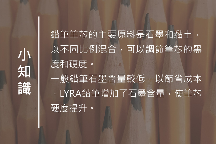 LYRA 以創新及快速變換產品的點子,將LYRA的未來持續在鞏固於群眾的讚賞聲中,直到今日,它是世界最老的品牌之一,不僅成為高標準產品的領導者,也帶動了歐洲鉛筆工業的發展。