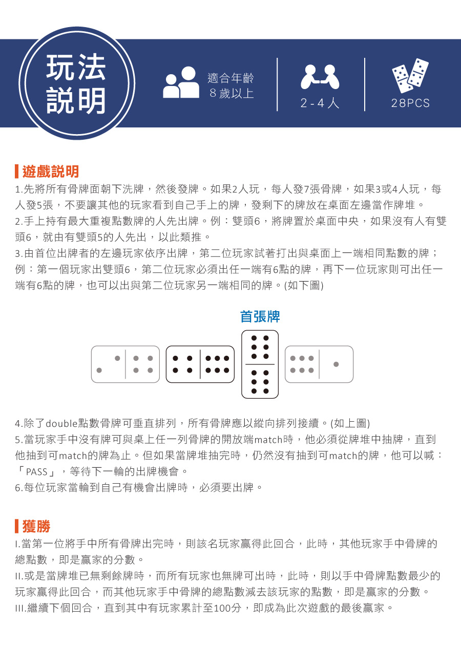 Domino是西洋的一種遊戲棋,玩法很簡單,只要是兩端的點數相同,