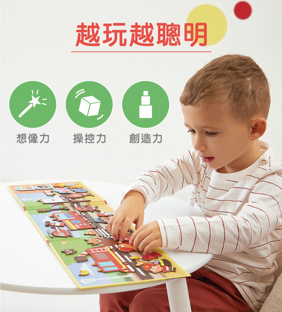 可折疊超大篇幅的情境背板,搭配30枚造型磁貼,它們將在您孩子的想像中變得栩栩如生~