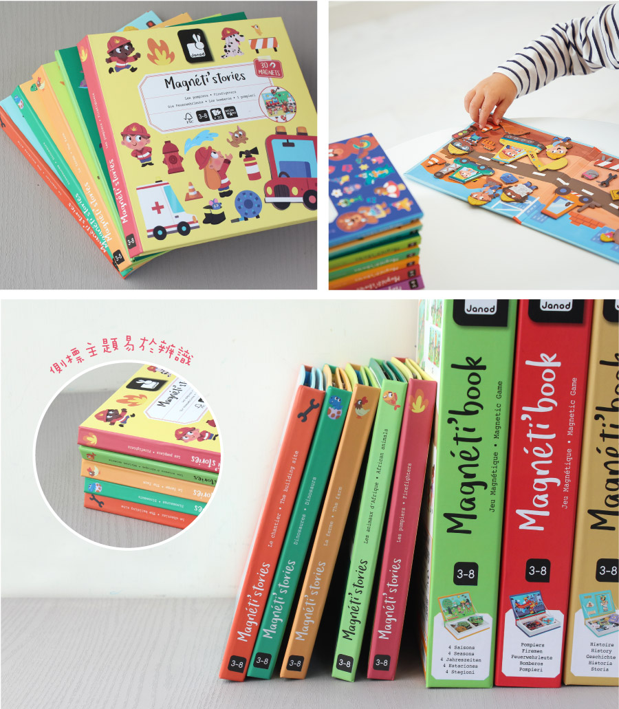 打開磁鐵故事書,將帶領孩子進入天馬行空的想像世界。法式插畫,結合多元的磁性元件,引領孩子進入學習的情境和動機,創造出許多有趣的故事。折疊式設計,不佔空間、攜帶更方便。穩定的磁性,可使遊戲進行更順暢,特別是外出時。