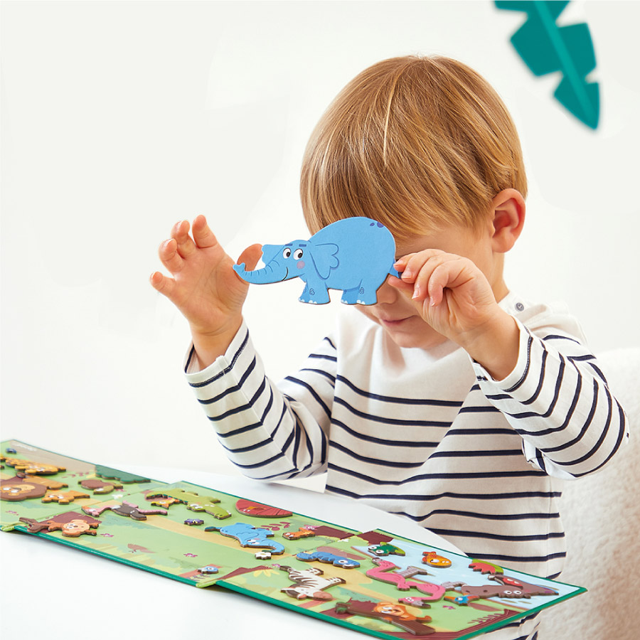 一旦將造型磁貼完美的放置在場景背板上,表示故事已經完成,孩子就會高興地將場景立起,並講述正在發生的事情。