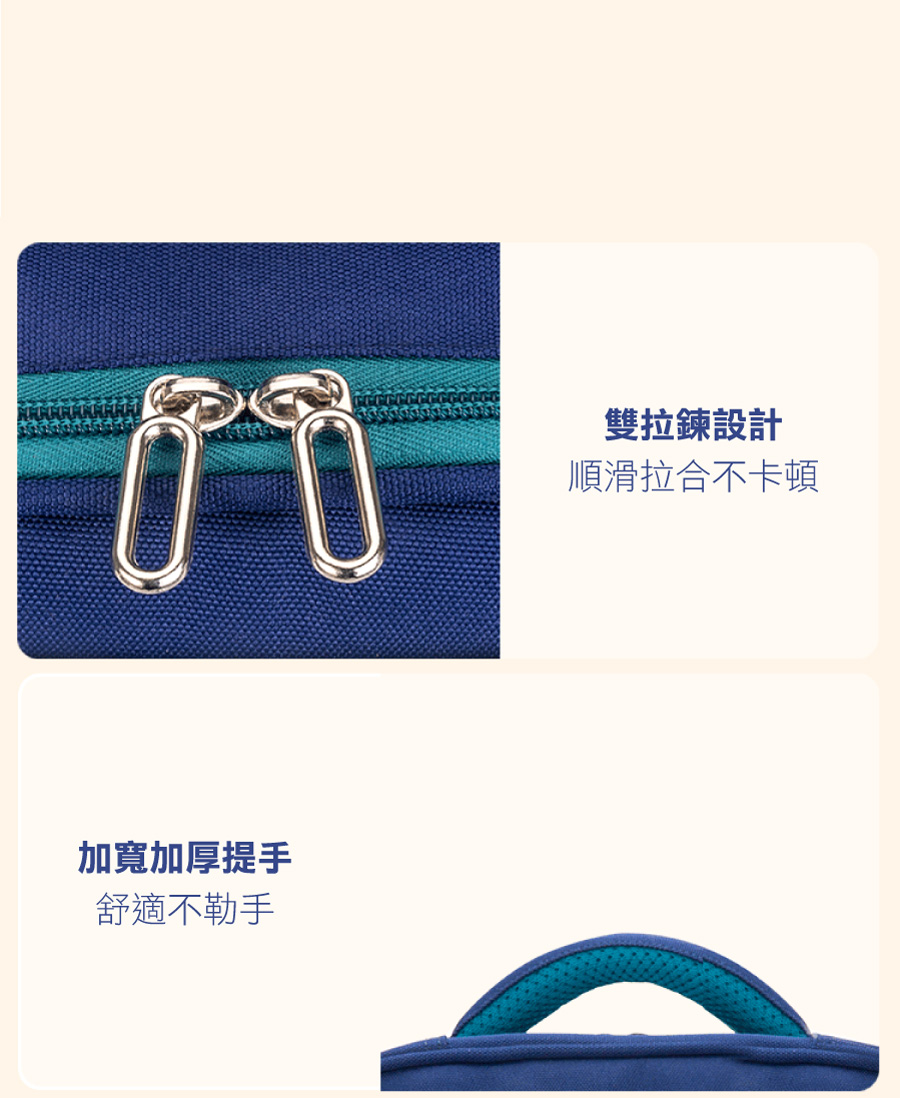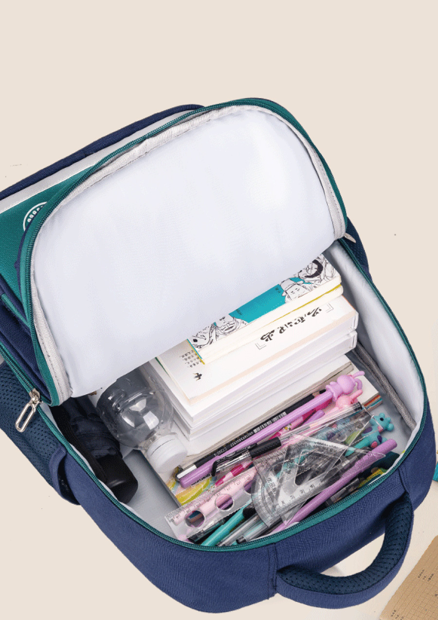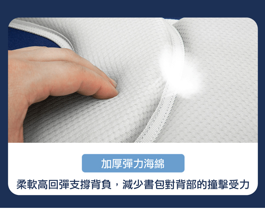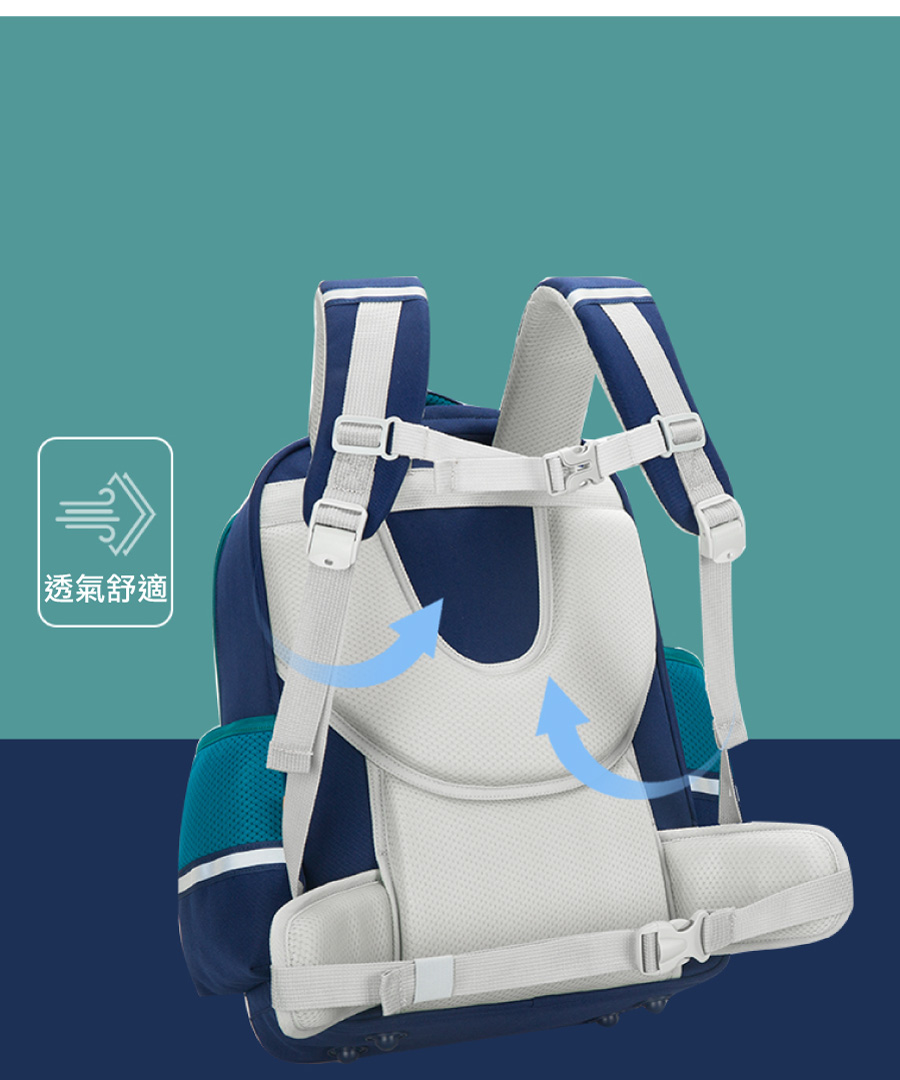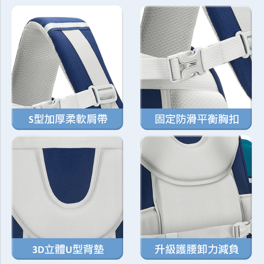 ● 6點式減壓設計,人體工學重力分區穩固書包,保護孩子腰部和脊椎,保持挺拔身形