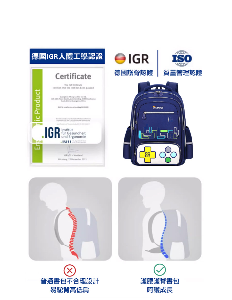 ● 經德國人體工學認證,腰脊雙護,讓孩子健康成長