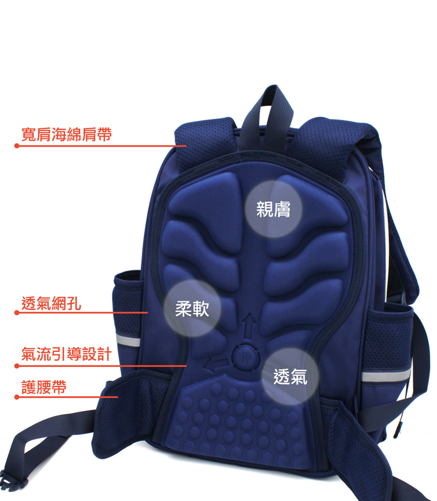 ● 減壓減負背墊,呵護孩子成長中的腰部和脊椎