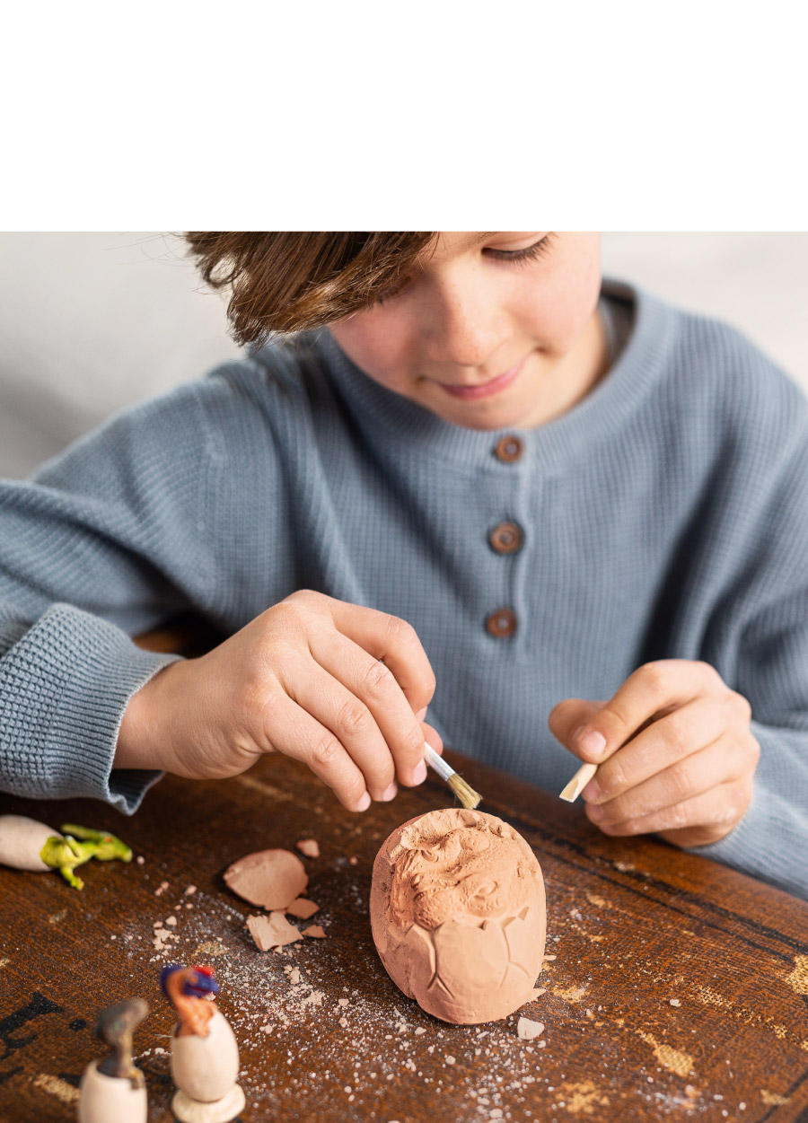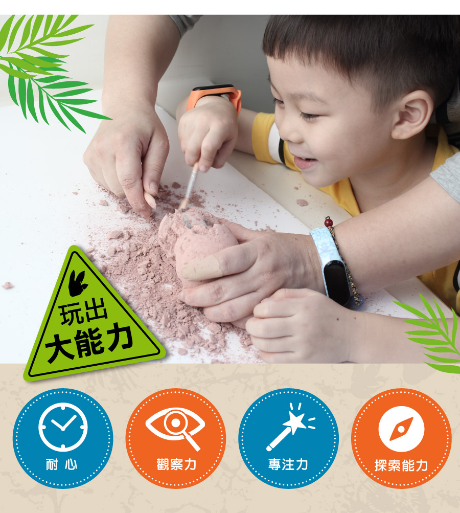 仿泥土塊恐龍蛋,透過內附工具,體驗考古工作的細膩,