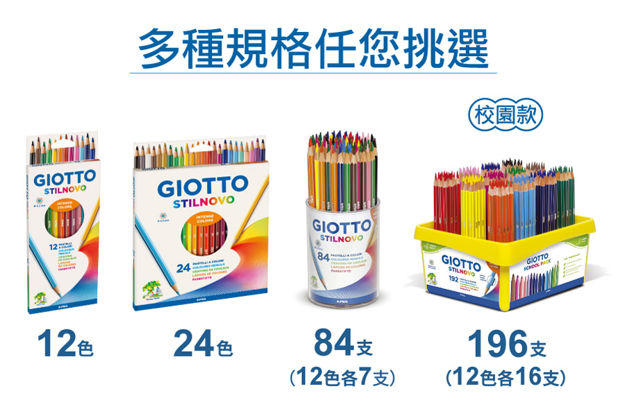 而GIOTTO系列,一個繪畫的代名詞,包含了專業的彩色筆、彩色鉛筆、所有產品都經過深入的研究和嚴格的品質測試,堅持給三歲以上的孩子最適合及最安全的保證。