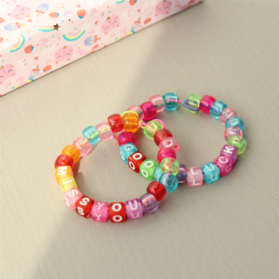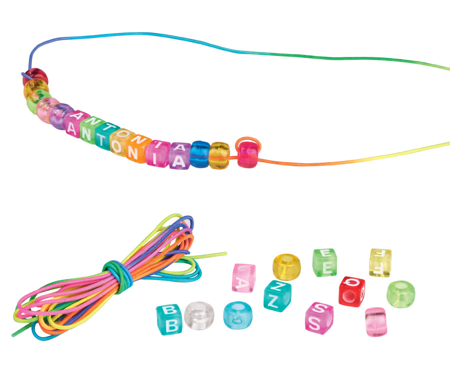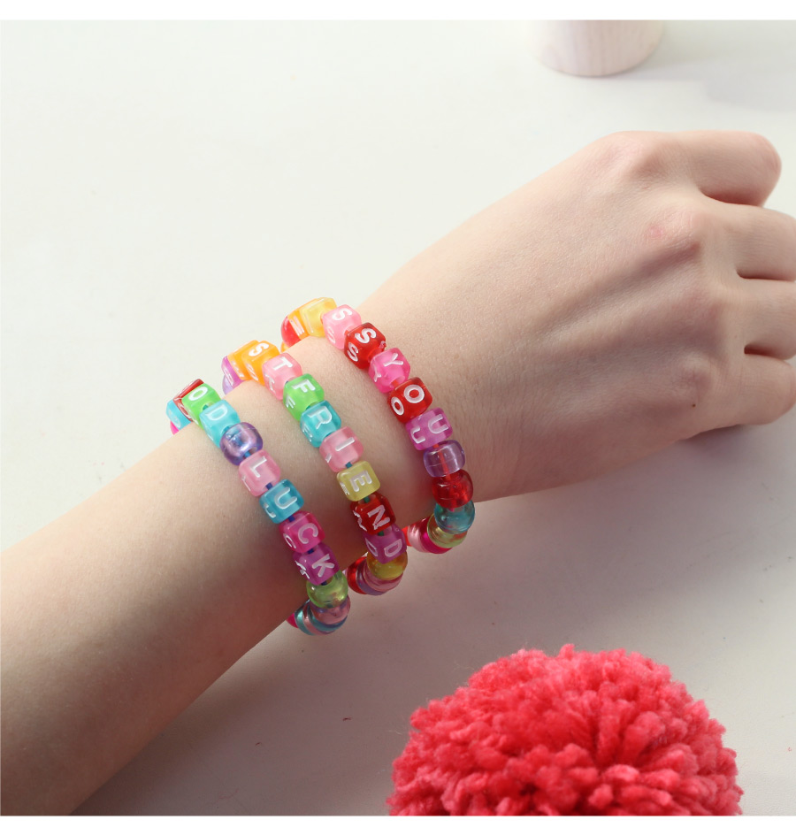 內含200顆字母珠、多亮彩色珠和一條彈性彩虹帶,可製作各式手鍊、飾品
