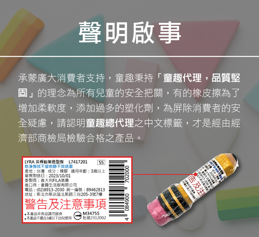 LYRA所有產品均通過歐洲所有安全性檢測以及醫學測試,LYRA的鉛筆及色鉛筆,顯色度佳,堅固不易斷,提供高品質、安全、環保的產品。有了這樣的承諾,世界各地的父母們都以選用安全和物超所值的產品。