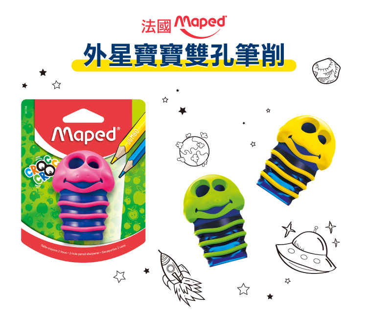 Maped-秉持70年的文化傳承,不斷研發創新,設計品質卓越和符合人體工程學的產品,成為世界領先的學校用品品牌,除了持續提升產品原有的性能外,我們也添加了一些有趣的元素,例如:查克兔筆削、幽浮橡皮擦、彎曲尺、免按壓自動鉛筆......等,讓學習成為另種一新的體驗。