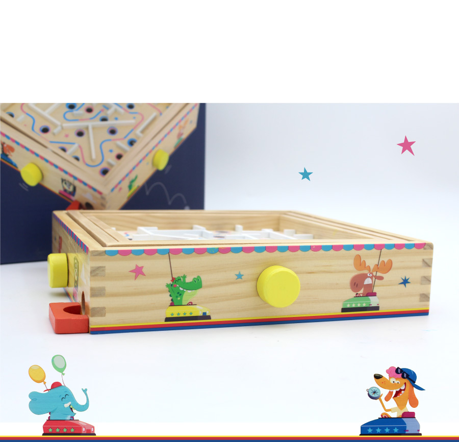 準備好接受挑戰了嗎?這款木製滾球迷宮遊戲考驗你的專注力與操作技巧!透過旋轉兩側的旋鈕,引導彈珠沿著路徑順利抵達終點,千萬要小心,別掉進陷阱裡!
