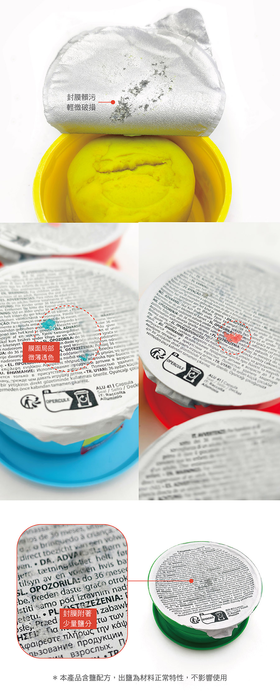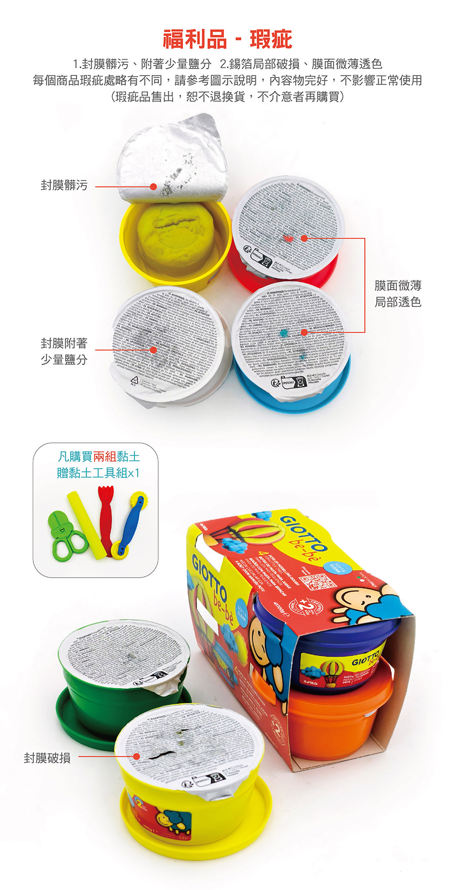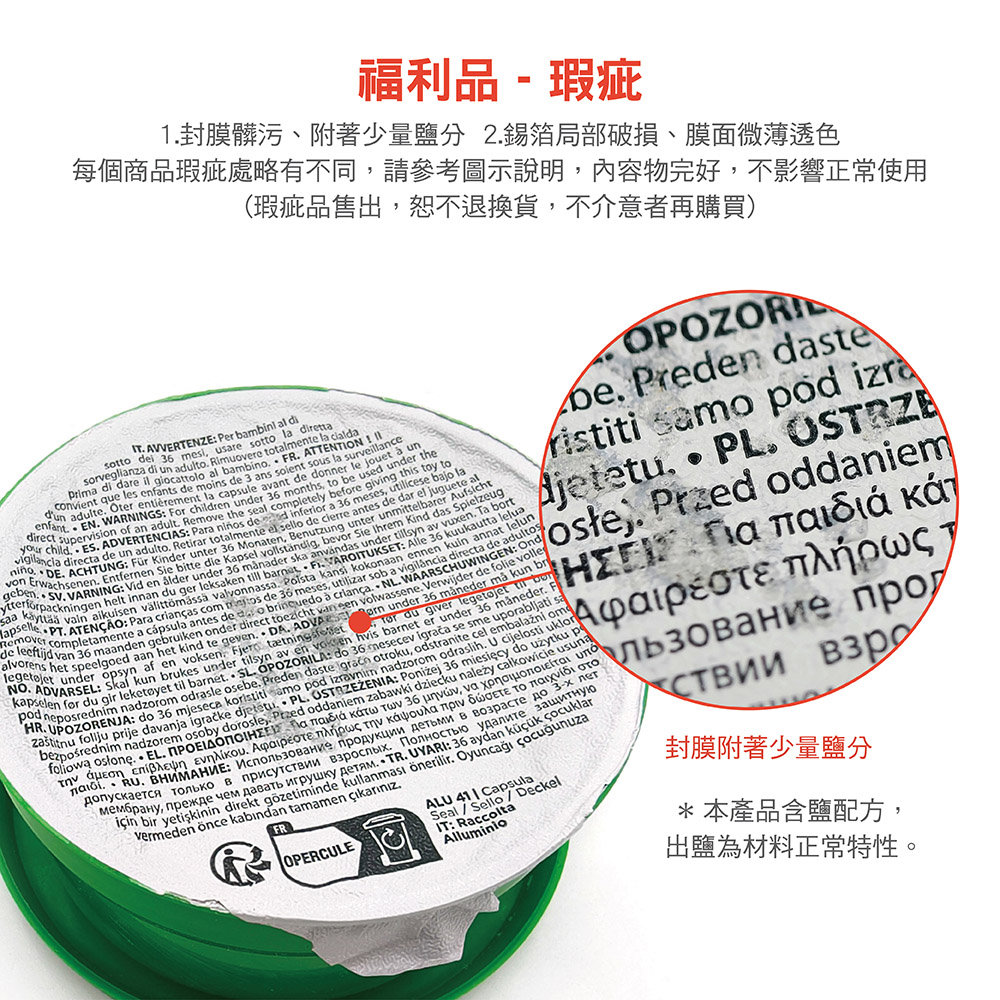 ● 福利品-瑕疵 :1.封膜髒污、附著少量鹽分 2.錫箔局部破損、膜面微薄透色。每個商品瑕疵處略有不同,請參考圖示說明,內容物完好,不影響正常使用(瑕疵品售出,恕不退換貨,不介意者再購買)