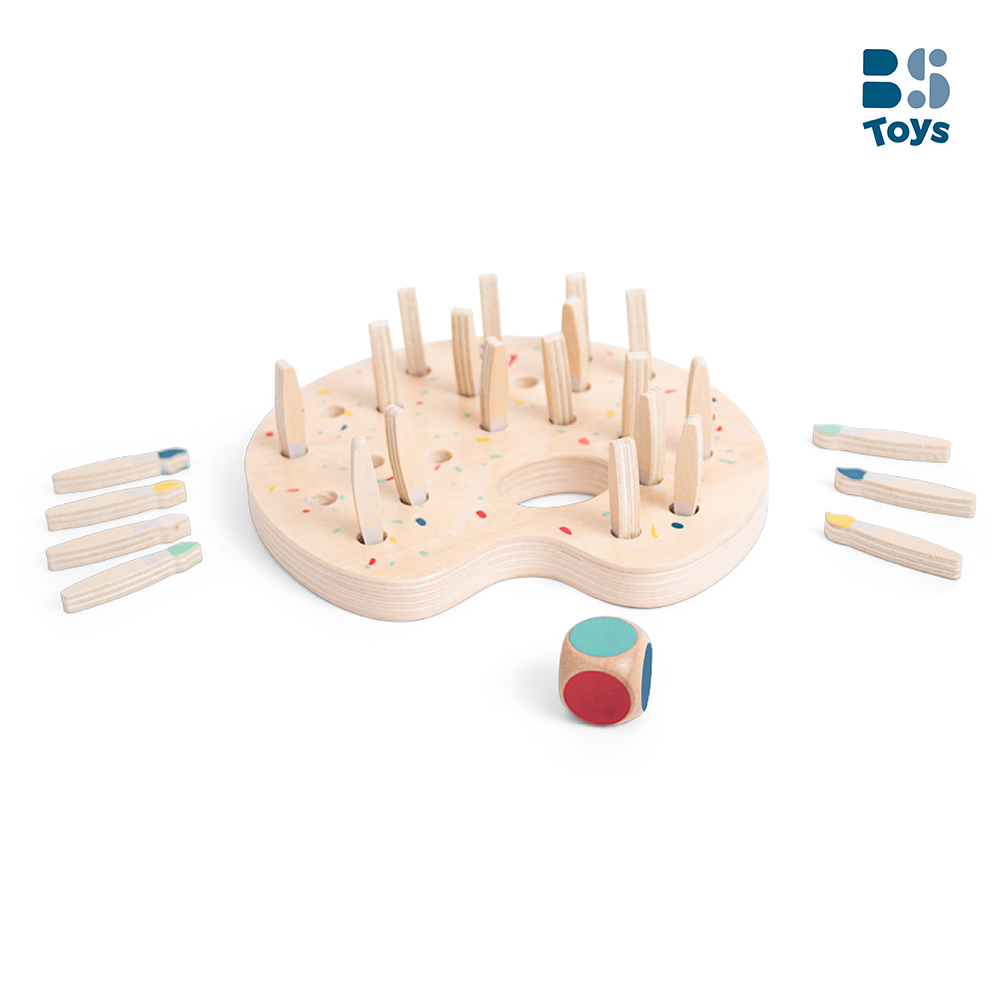將彩色畫筆隨機插入調色盤的小洞裡,你能記住它們的藏身之處嗎?擲骰後,尋找與骰子顏色相符的畫筆,找到就保留,沒對上就放回去,考驗你的記憶力,擁有最多畫筆的玩家獲勝。快來一起享受這場繽紛有趣的家庭遊戲吧!