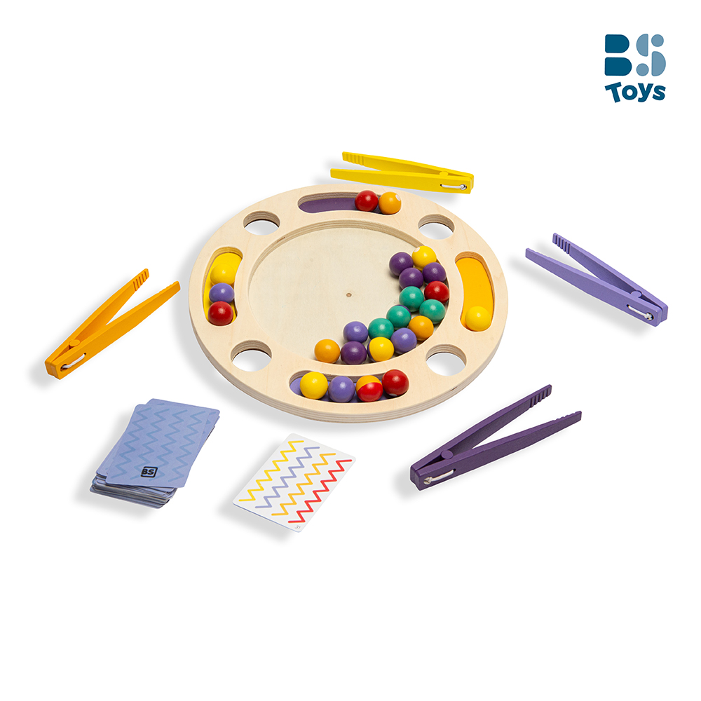按照牌卡上所指定,你必須快而準確的夾起對應顏色的彩珠~注意!圓盤會搖晃,彩珠會滾動,這是一款手眼協調能力和反應力大挑戰的桌遊。