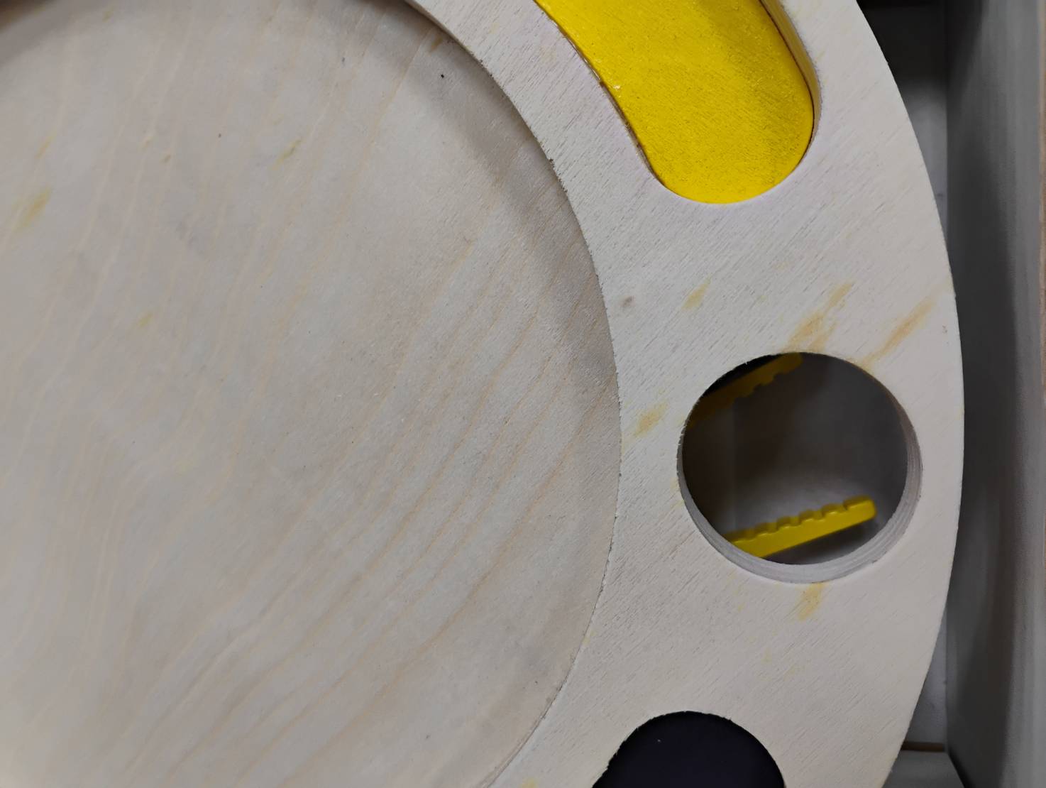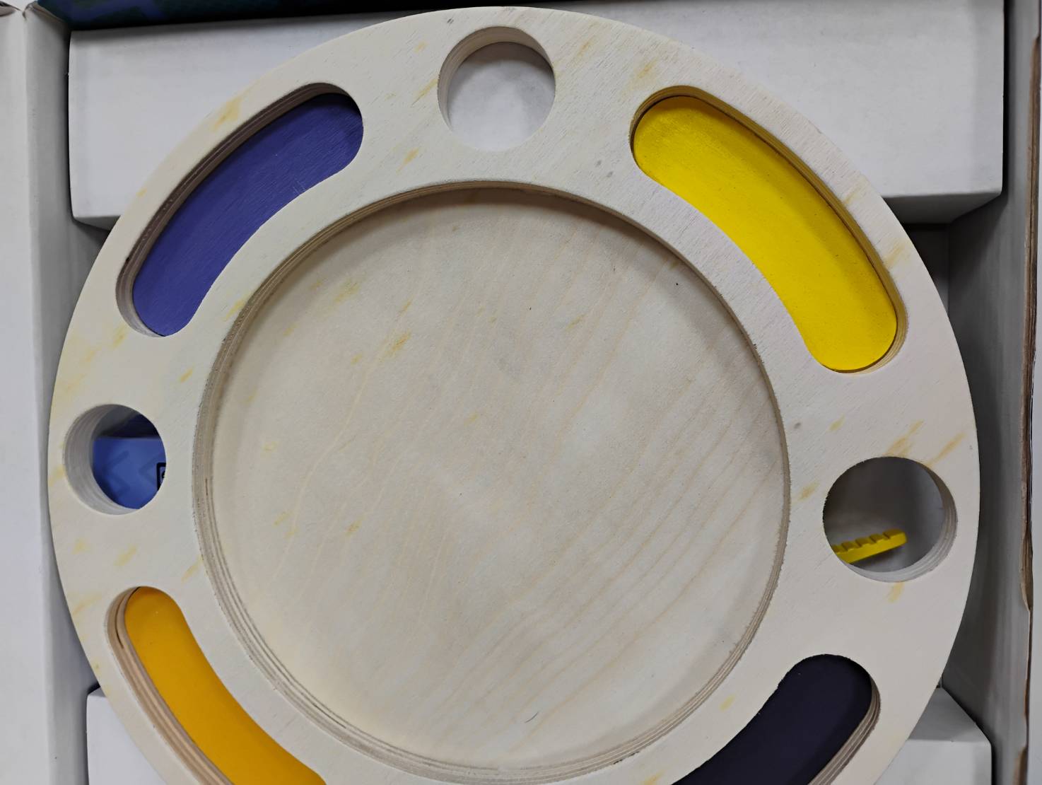 每個玩家各一個木頭鑷子與對應的空盤色,