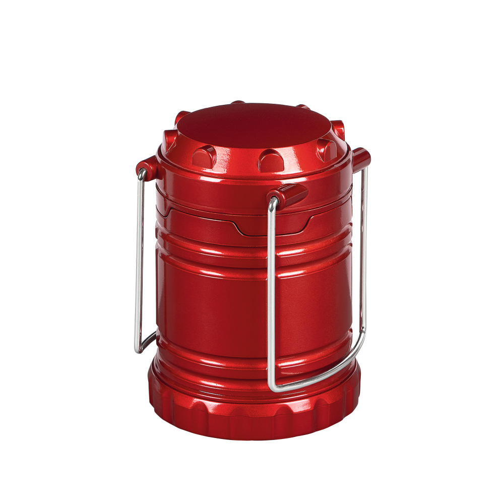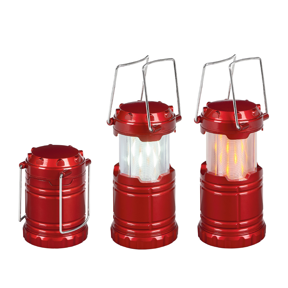 第二段-將露營燈上端壓回,再將其拉伸,則發出閃爍的紅光,讓人聯想到營火,營造出舒適的氛圍。